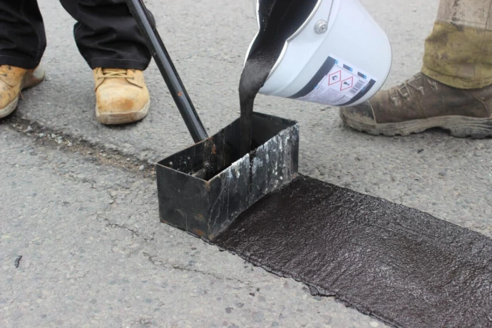 Les fissures importantes sont traitées par l’application d’un mastic bitumineux (goudron) coulé à chaud.